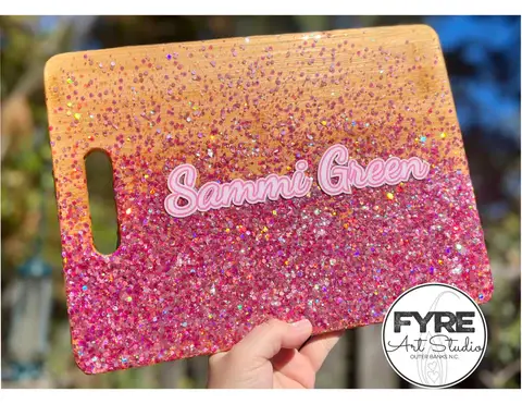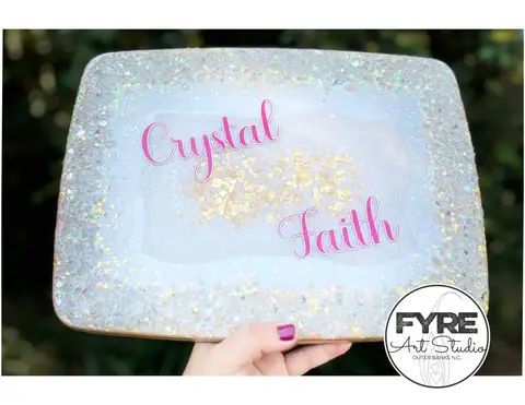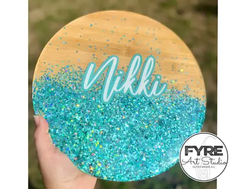 Fyre Art Studio specializes in custom and personalized trays and lazy susan’s. Personalized with your name or company logo. Please email us the details of your project and we would be glad to give you a quote!